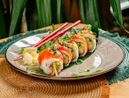 Rainbow - kalmar w tempurze, oshinko, łosoś, tuńczyk, awokado - 4 szt.