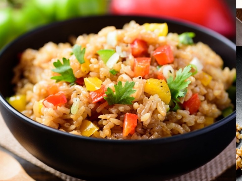 Ryż faszerowany róznymi składnikami , uformowany w kształt trójkątnej kanapki lub kulek.
