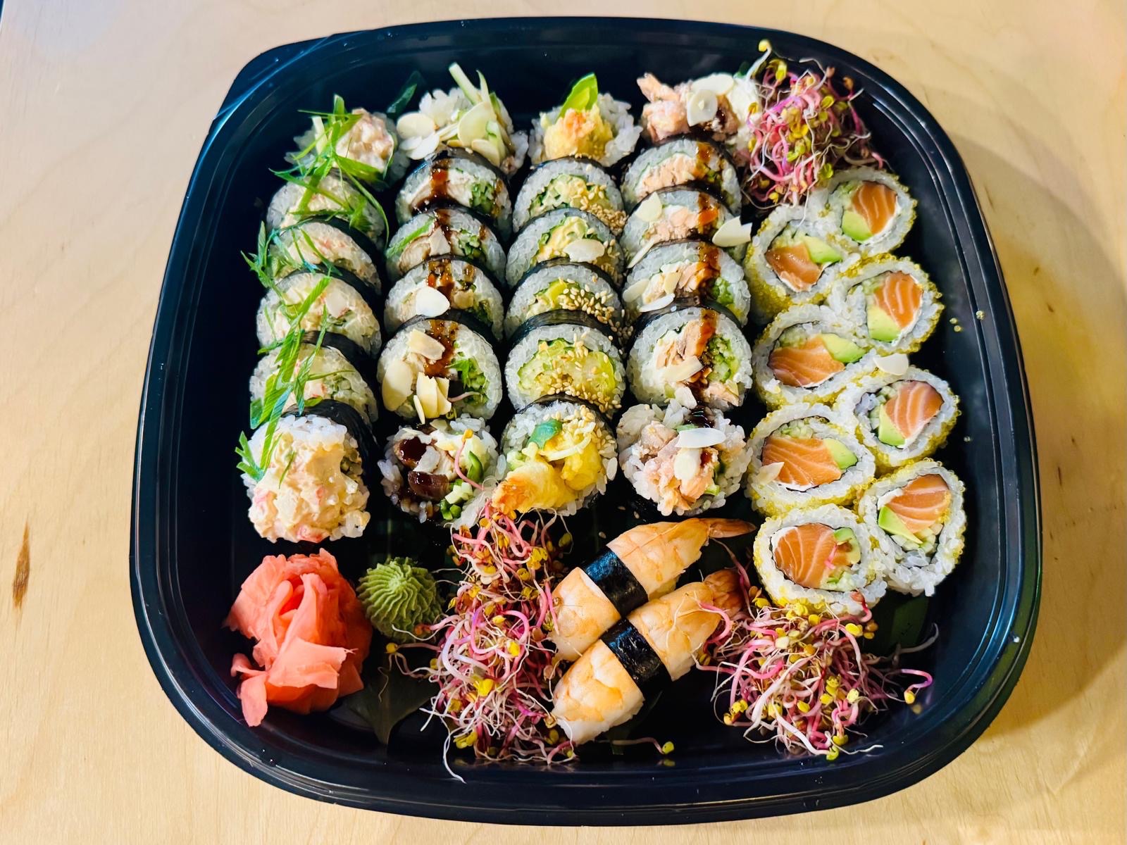 Ryż z różnymi dodatkami, owinięty w arkusze wodorostów nori.